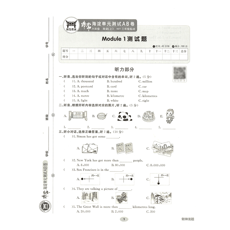 听听力历经26次改良2024新正版 三年级起点含答案扫码 试卷基础达标重难点过关6上WY英语 测试AB卷英语六年级上册外研版 非常海淀单元