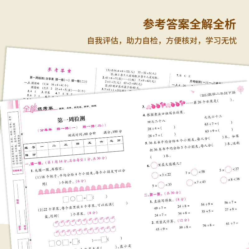 综合测试卷全能练考卷荣恒 检测2年级下册单元 北师大版 数学试卷二年级下册数学测试卷二年级下册试卷加减乘除法口算应用题训练单元