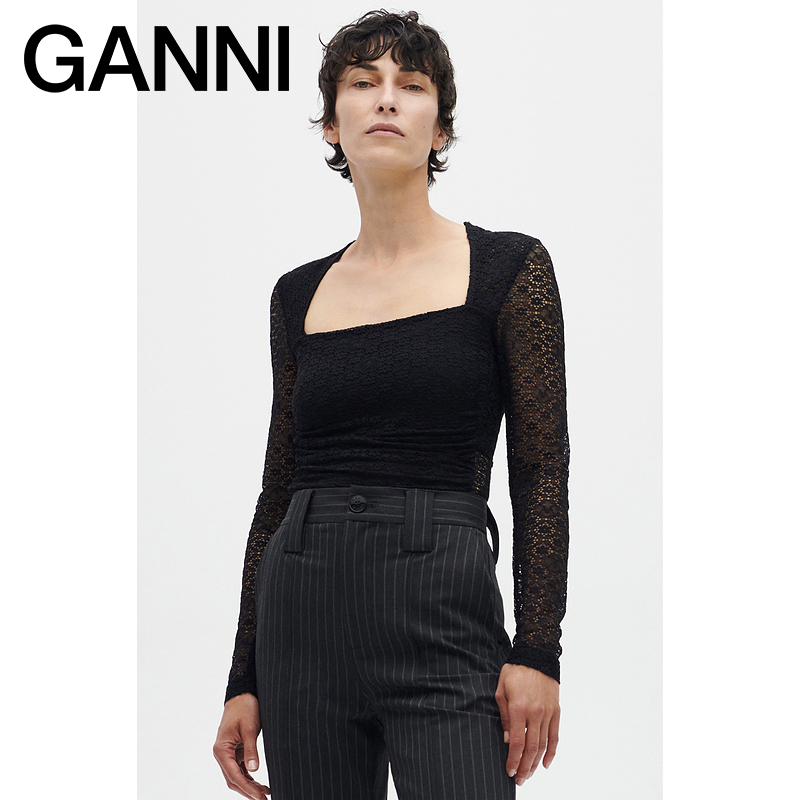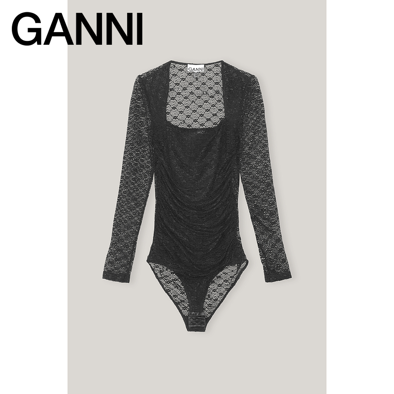 连体衣 黑色直方领蕾丝修身 GANNI女装 T3118099 价同双11