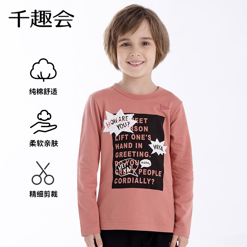 运动圆领休闲卡通印花全棉长袖 男童时尚 T恤 25春秋款 千趣会童装