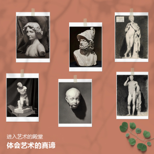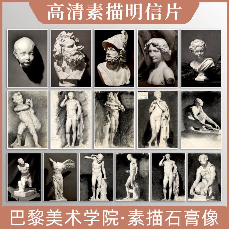 巴黎美术学院素描石膏像临摹卡片明信片附膜大尺寸范画留言卡16张大师画册集艺术文创贺卡手绘插画世界名画册集高清范本马赛