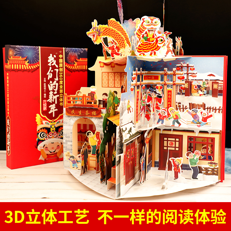 新年礼盒 新年360度立体书3 12岁儿童3D立体书中国传统春节过新年礼物有声互动翻翻立体书 我们
