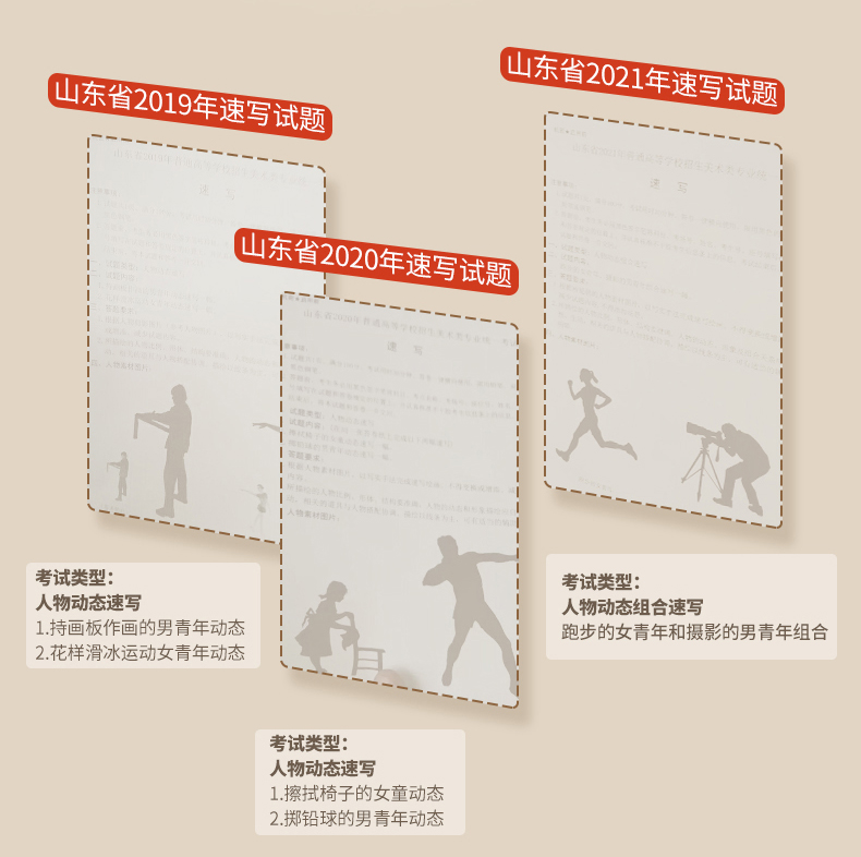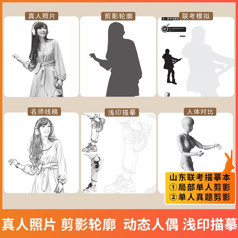 单人真题剪影 局部单人剪影 往届考题剪影 真人照片 山东艺考专属指南 2021 人体场景服饰 山东美术联考速写描摹本