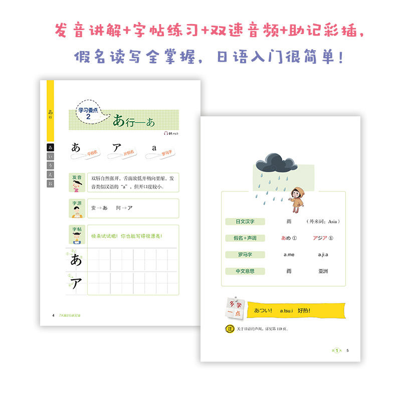 扫码 小巧便携 自学日语教程日语音标入门零基础自学日语 7天搞定日语50音 音频字帖练习标准发音常用短语单词例句助记词汇 新东方