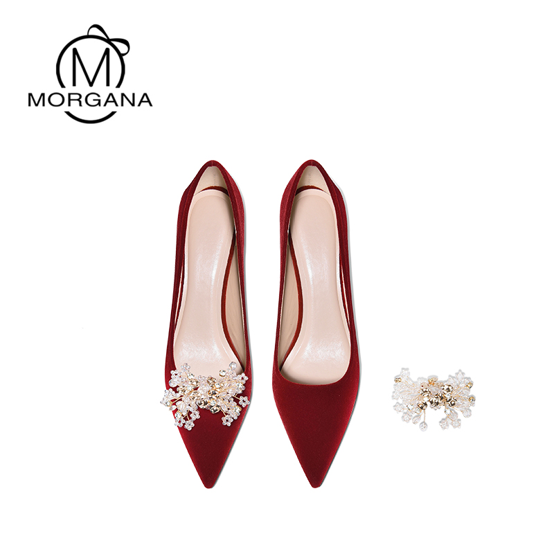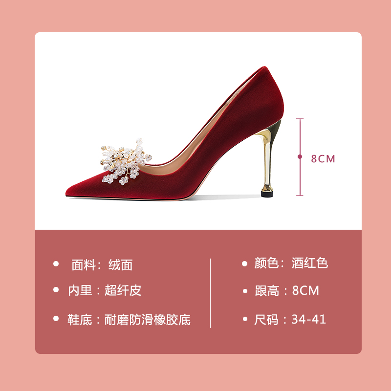 敬酒鞋 婚鞋 新娘猫跟秀禾婚纱两穿不累脚中式 红色高跟鞋 女2025新款