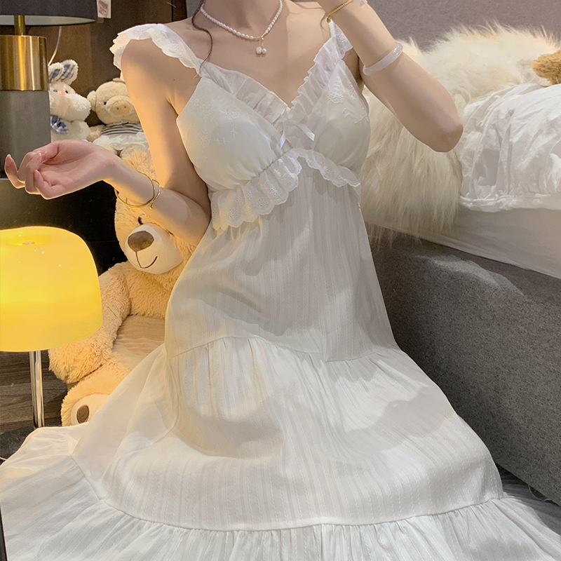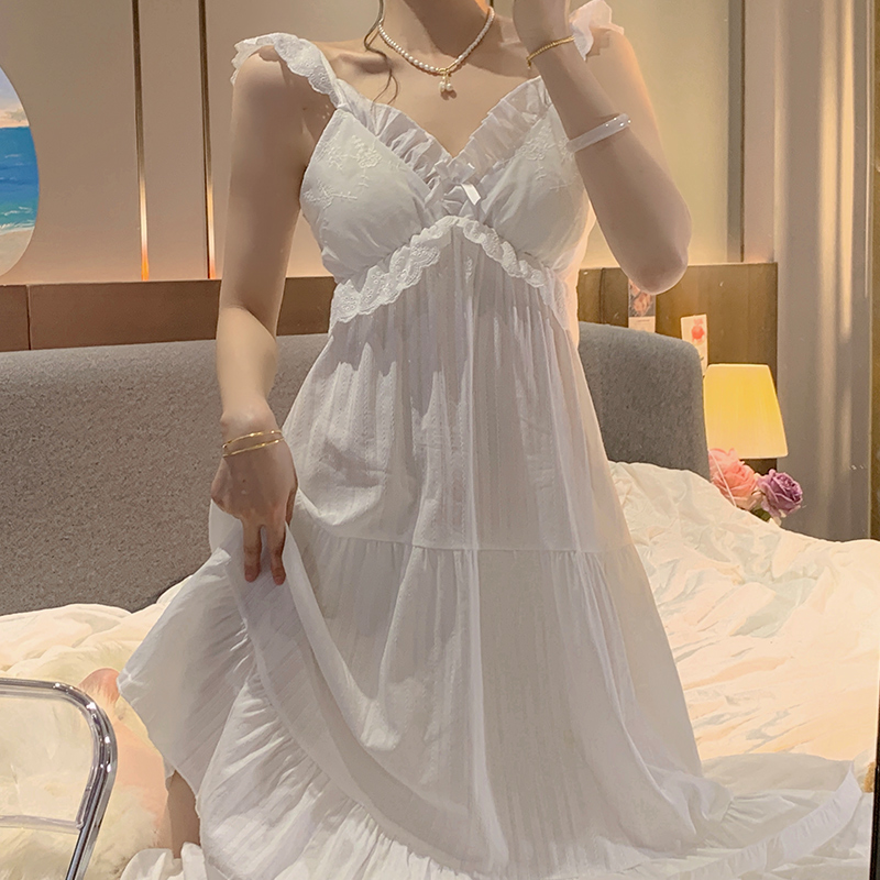 公主家居服 性感睡衣夏天纯棉薄款 宫廷风睡裙女夏季 吊带胸垫闺蜜装