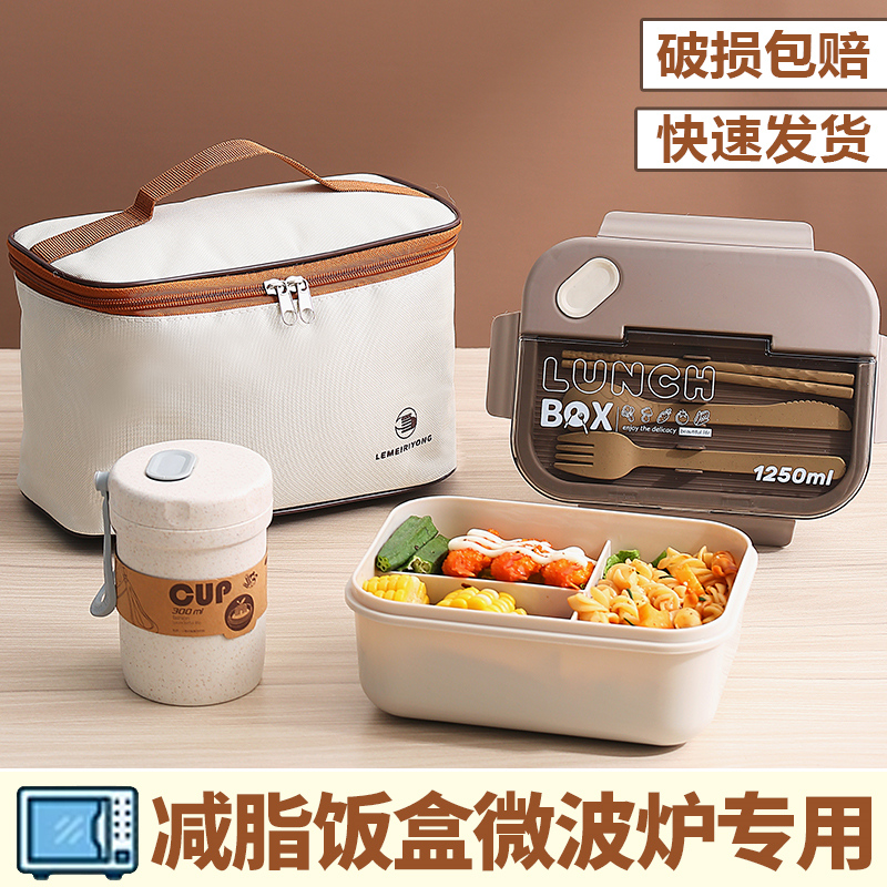 日式 分格密封便携 饭盒上班族可微波炉加热专用减脂便当盒餐盒套装
