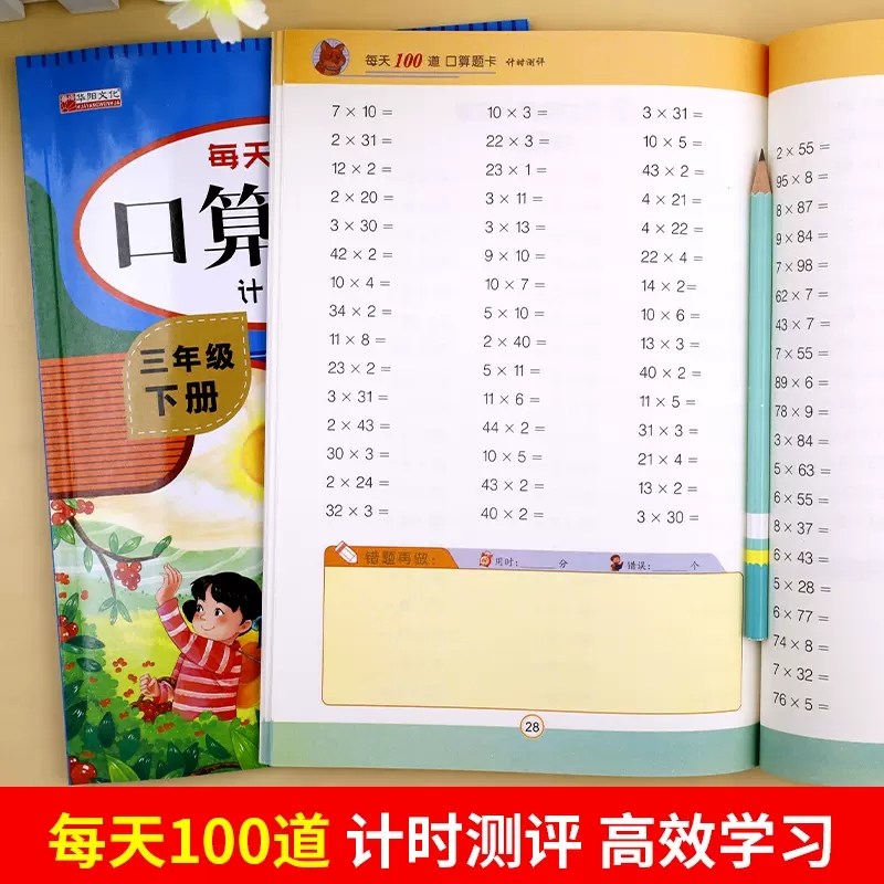 口算题卡一二三四五六年级上册下册数学专项强化训练人教版 100以内加减乘除本每天一练100道题 同步练习题口算心算速算天天练50