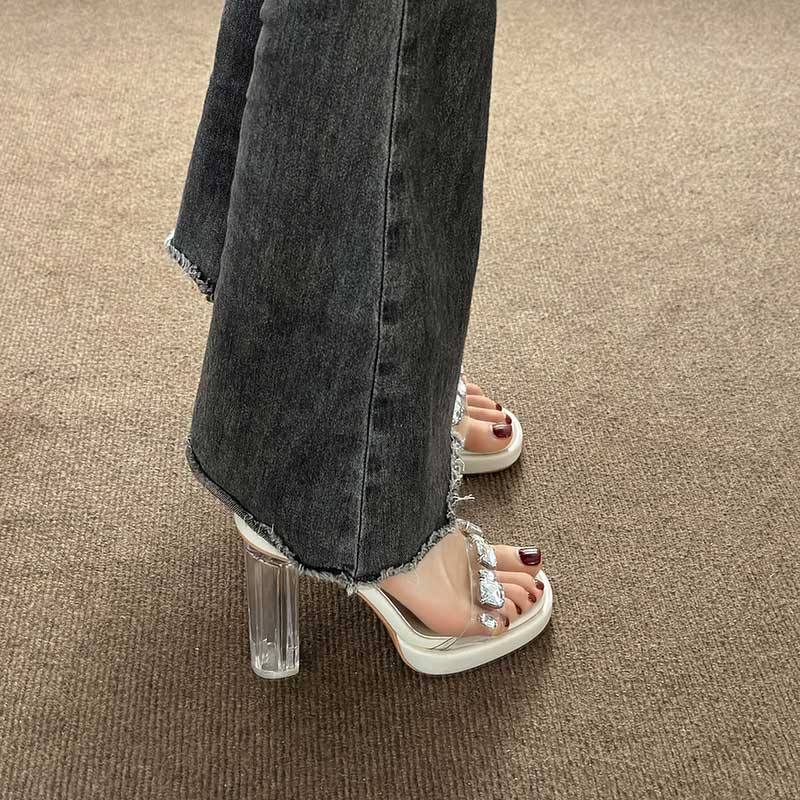 女粗跟凉鞋 水钻仙女风水晶凉拖鞋 夏季 时尚 外穿 2025新款 透明高跟鞋