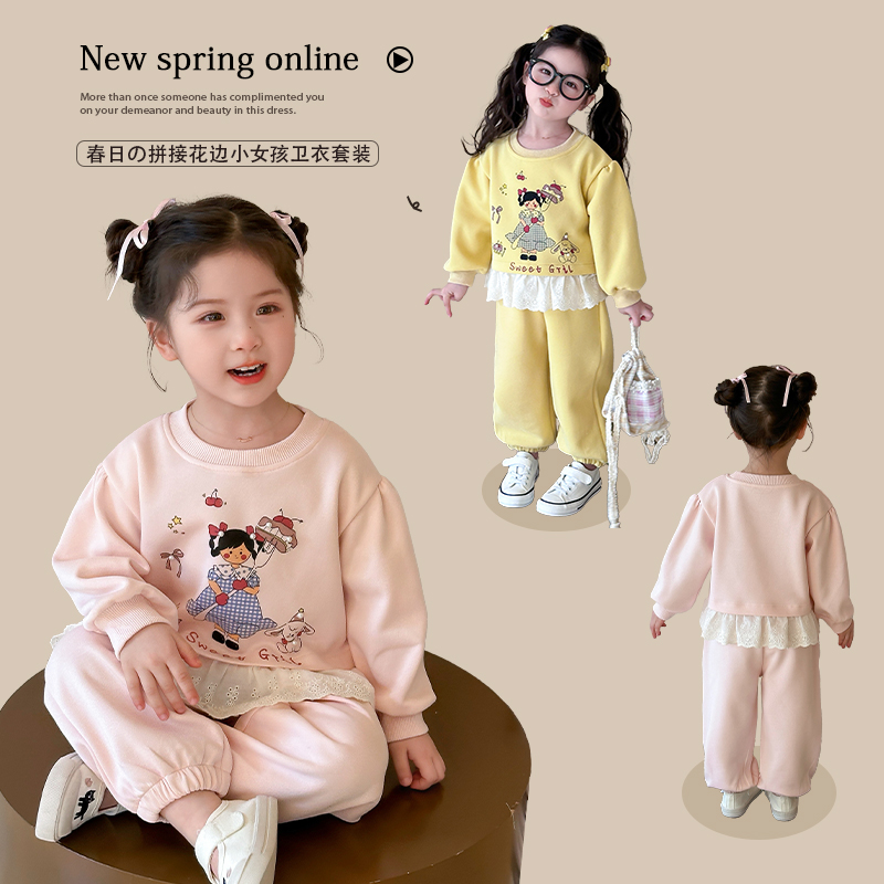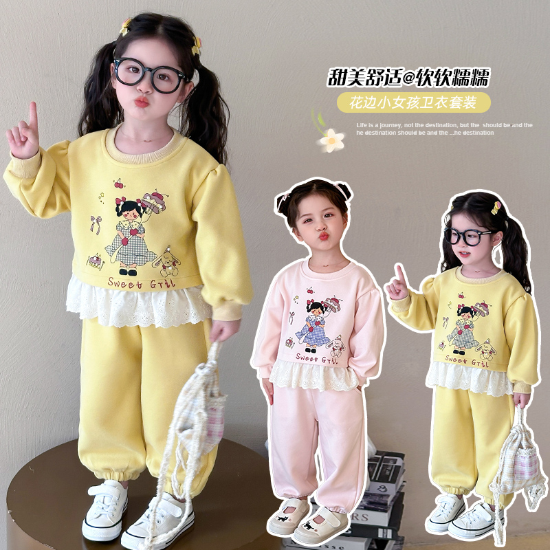 女宝宝秋季 女童秋季 儿童装 2025新款 时髦两件套潮 花边女孩卫衣套装