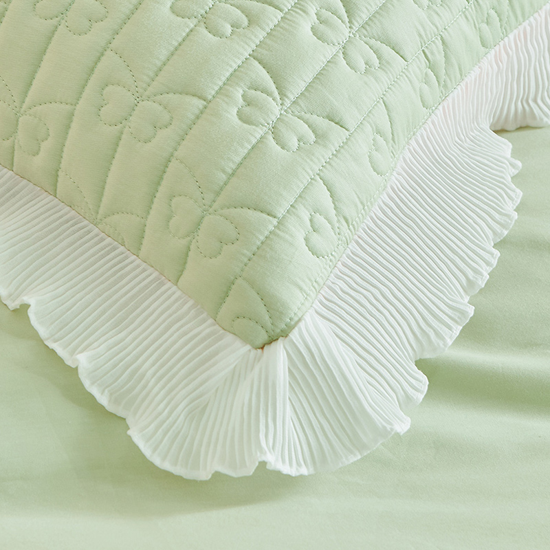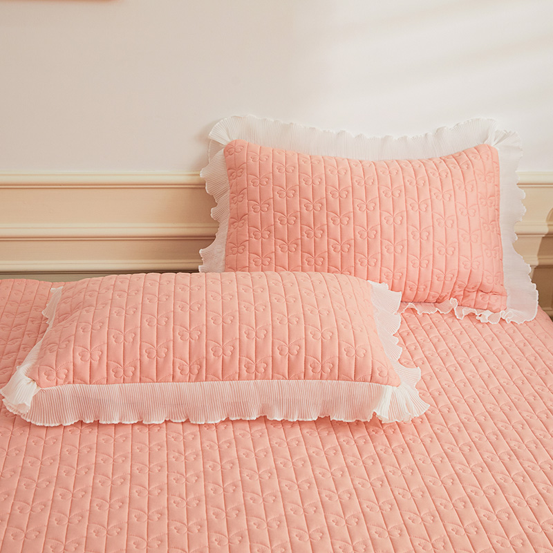 全棉绗缝夹棉纯色花边枕套100纯棉加厚48x74cm成人枕头芯套一对装