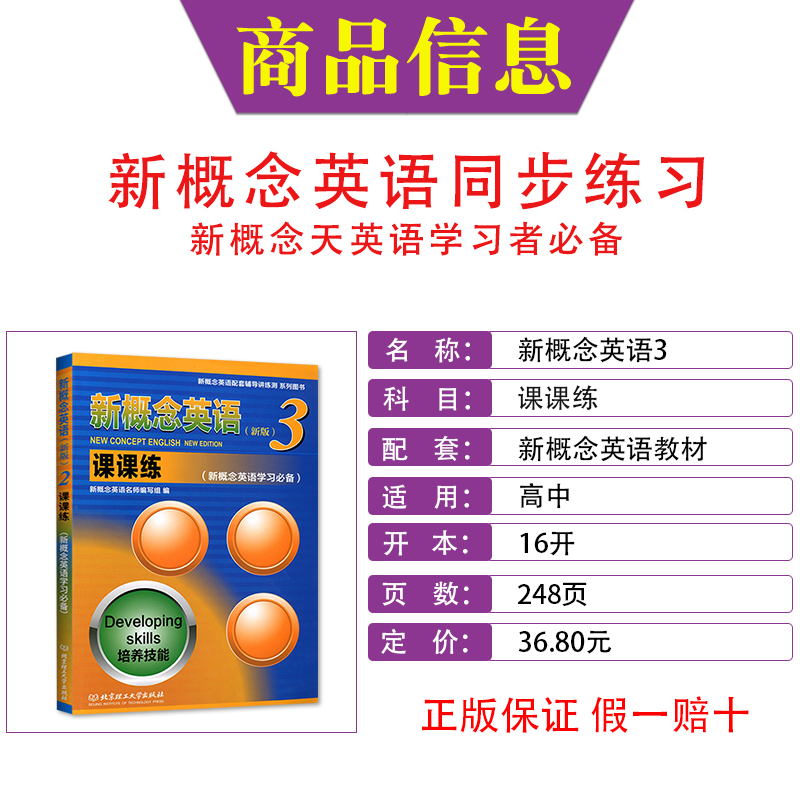 新概念第三册配套一课一练作业本同步测试卷练习册提高辅导练习题英语中阶北京理工大学出版 新版 新概念英语3课课练适用于高中学生