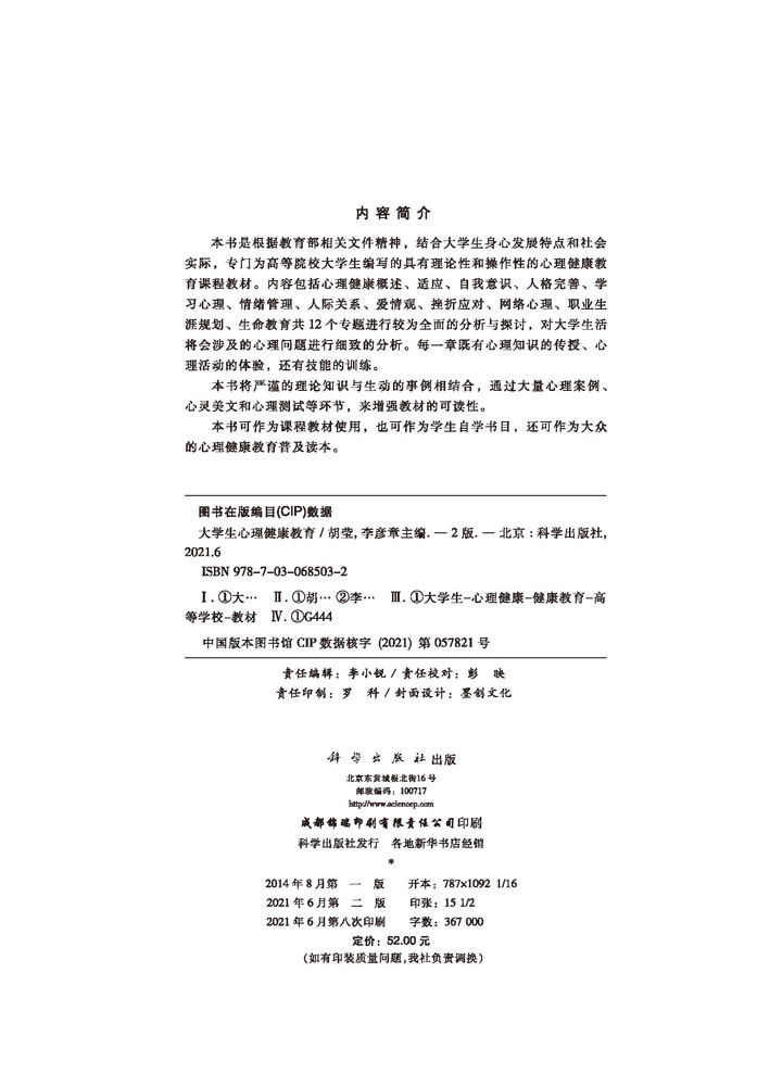 十四五 普通高等教育本科规划教材 主编 大学生心理健康教程 浙江大学出版 浙江省 马建青 社 第五版