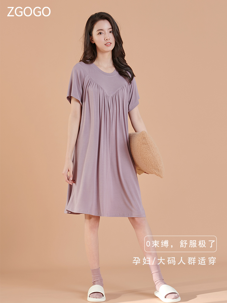 带胸垫孕妇大码 凉感纯欲风薄款 夏天冰丝睡衣 短袖 莫代尔睡裙女夏季