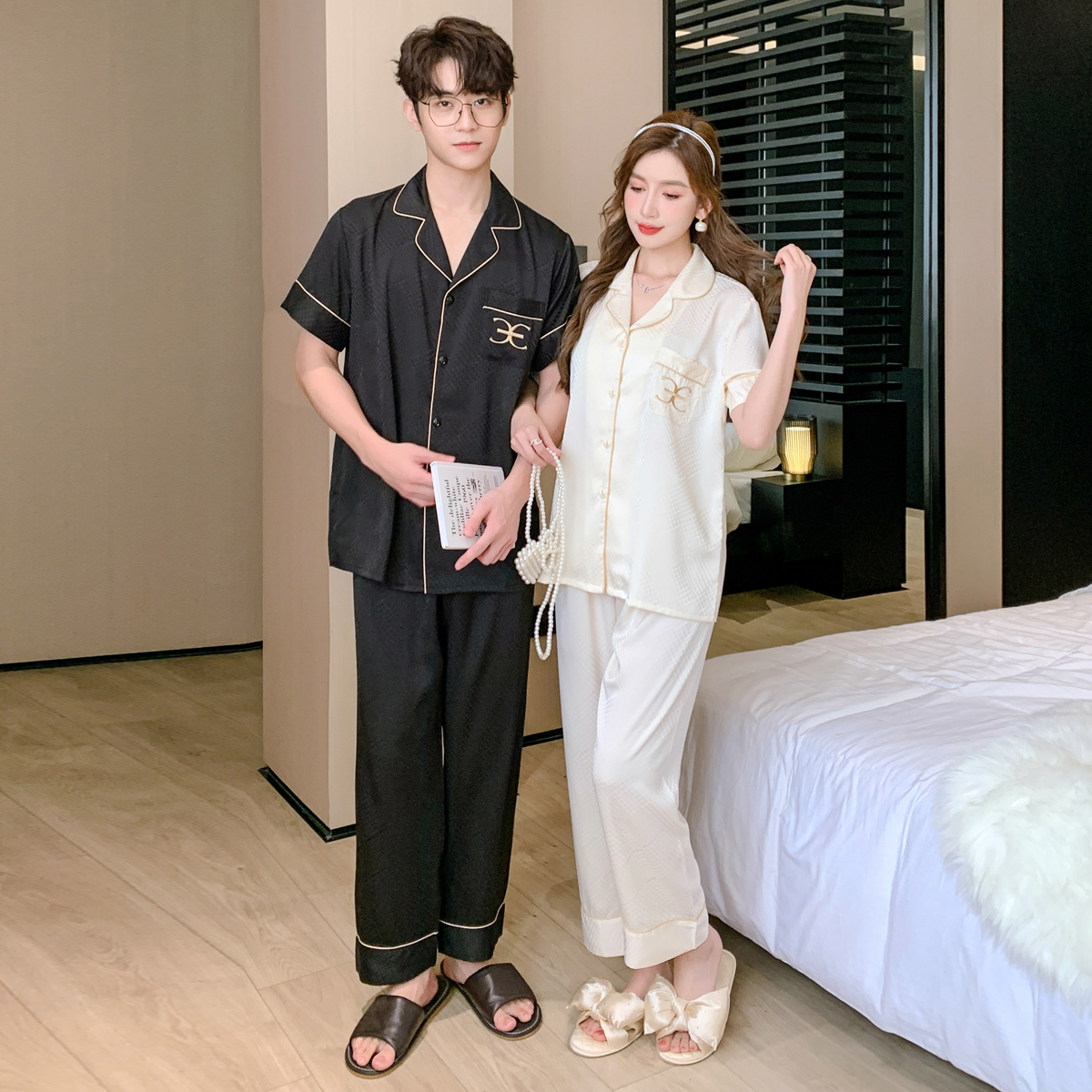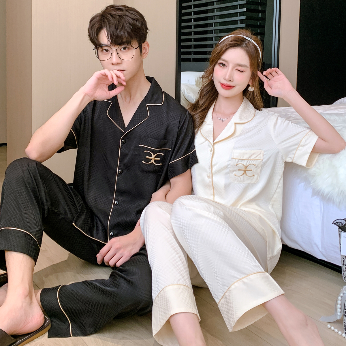 半袖 睡衣情侣男女2025短袖 薄款 丝绸冰丝夏春季 网红风大牌夏天 长裤