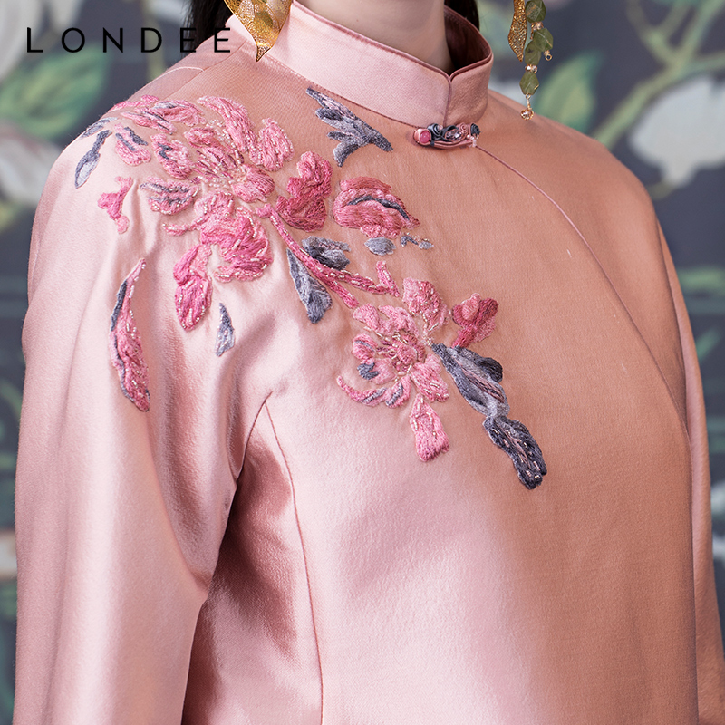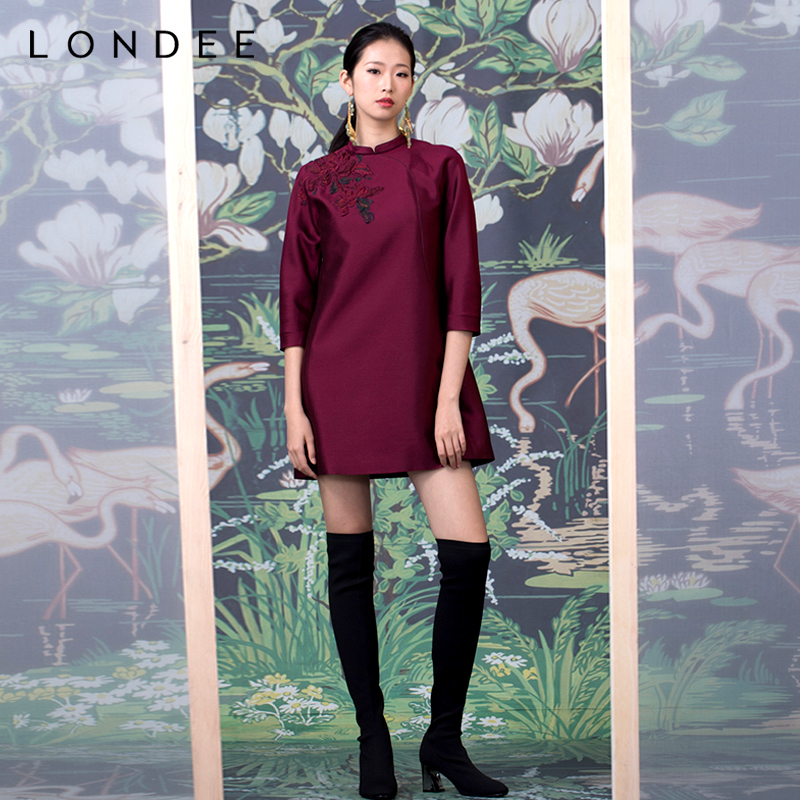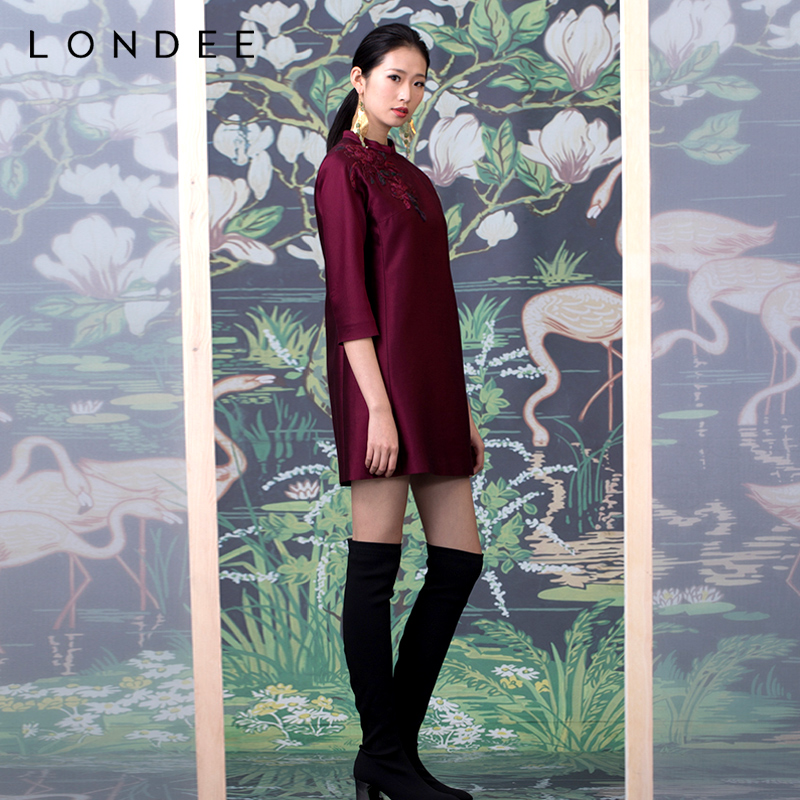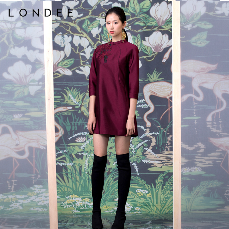 断码 盘扣旗袍领连衣裙收腰长袖 秒杀 新中式 缎面气质 太平鸟女装