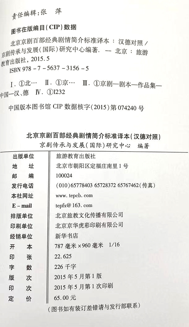 汉德对照 9787563731565 旅游教育出版 北京京剧百部经典 社 研究中心 剧情简介标准译本 国际 彩色 京剧传承与发展