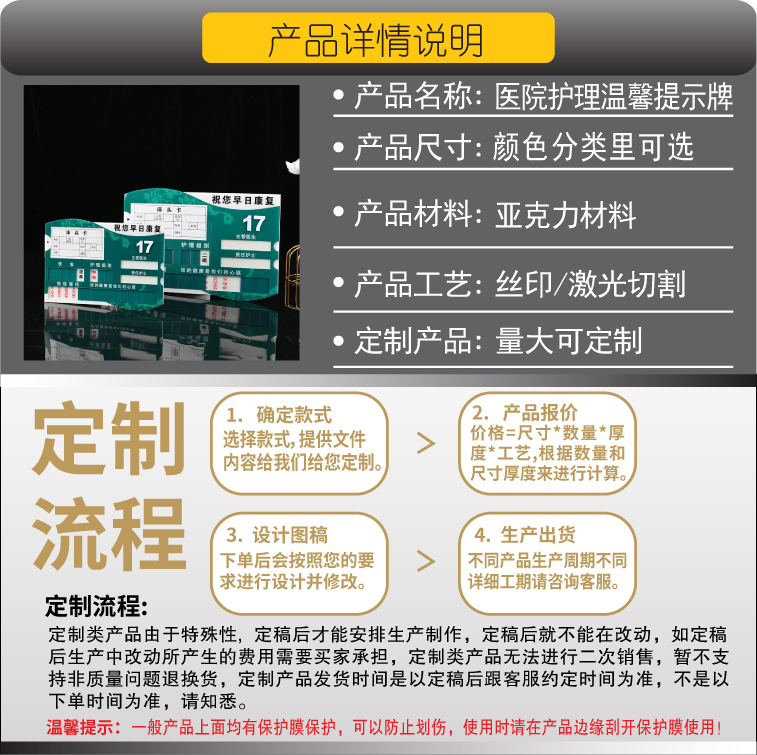 新款 护理床头卡标识牌医院病房祝您早日康复牌亚克力病人床号牌床尾卡老人院孕妇护理级别牌指示牌墙贴定制