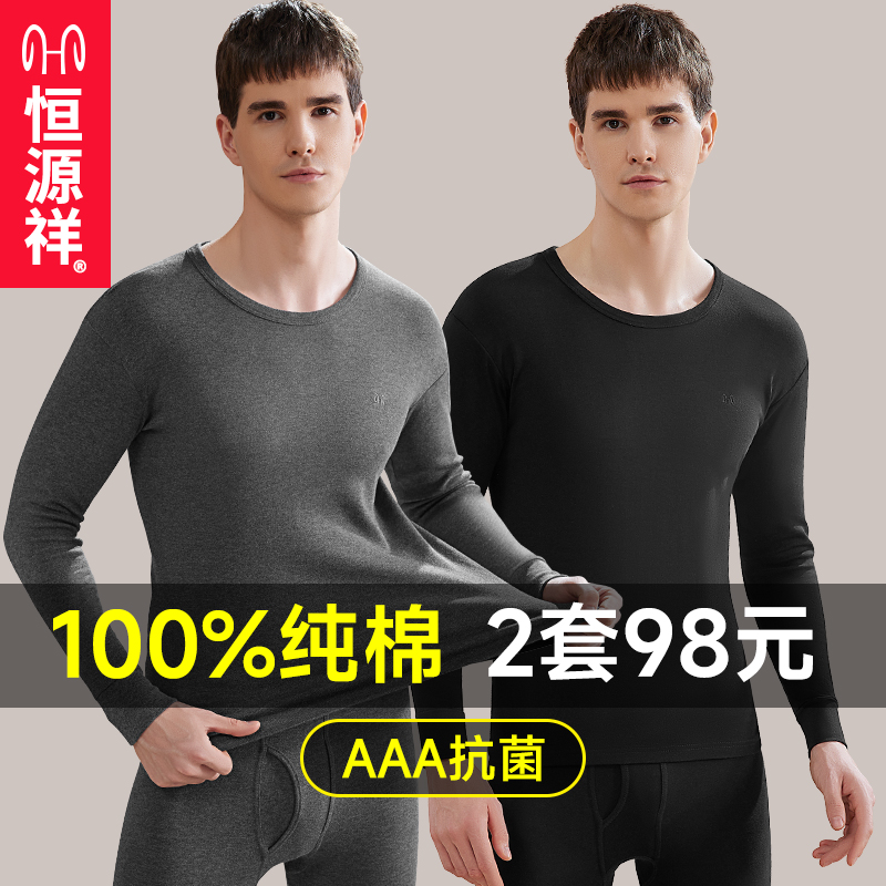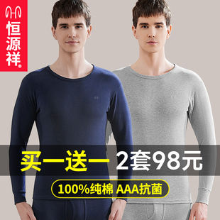 纯棉抗菌男式 冬季 大码 恒源祥男士 棉毛衫 秋衣秋裤 男款 保暖内衣套装