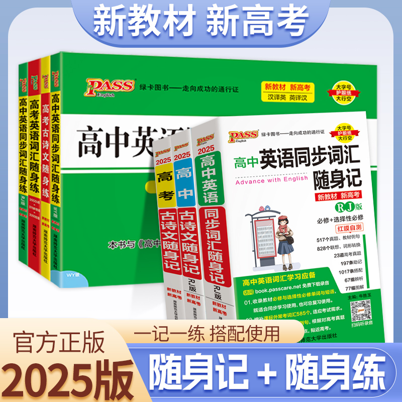 2025版 外研与教材同步考前复习均可使用同步学习背得快记得牢 绿卡高中语文英语同步词汇随身练高中语文英语同步词汇随身记人教