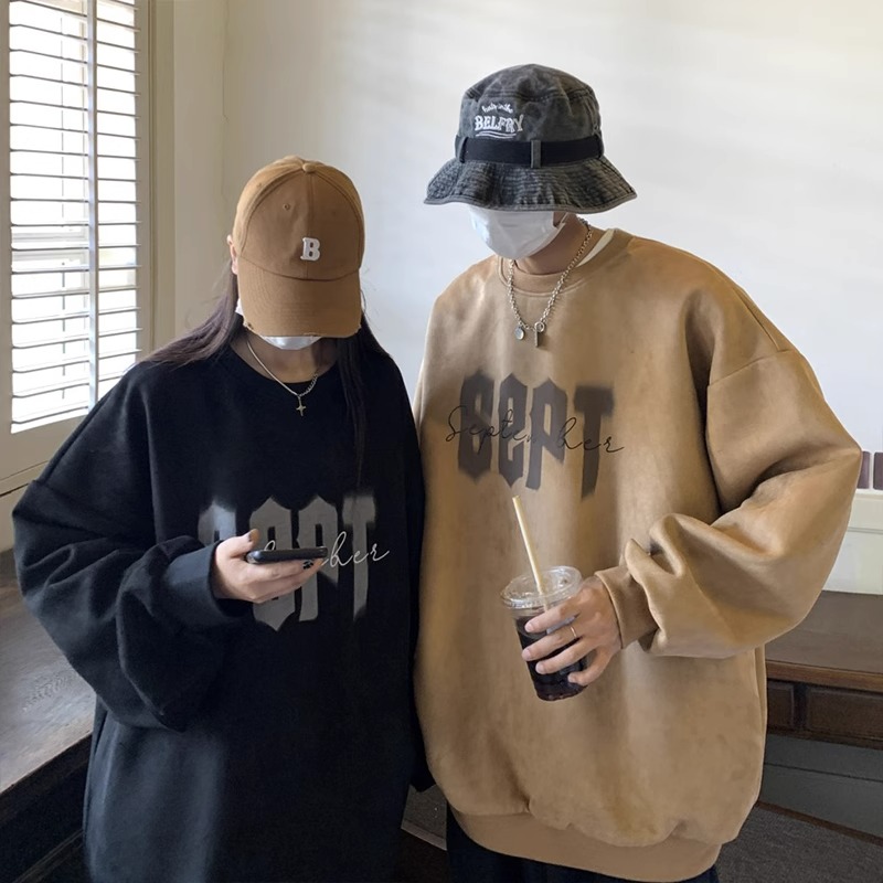 Nuthink多巴胺珍珠圆领卫衣字母重磅潮牌宽松情侣男女2025秋新款
