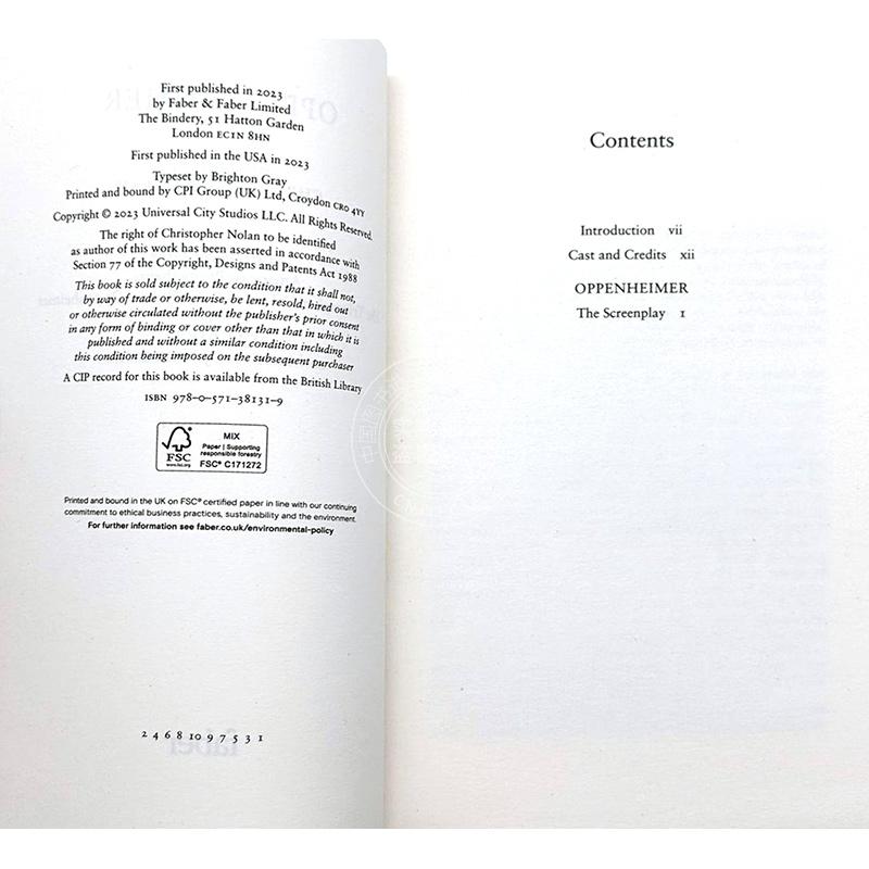 奥本海默 英文原版 电影剧本书 原子弹之父 Oppenheimer 克里斯托弗·诺兰 现货