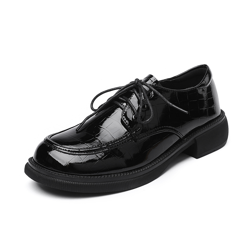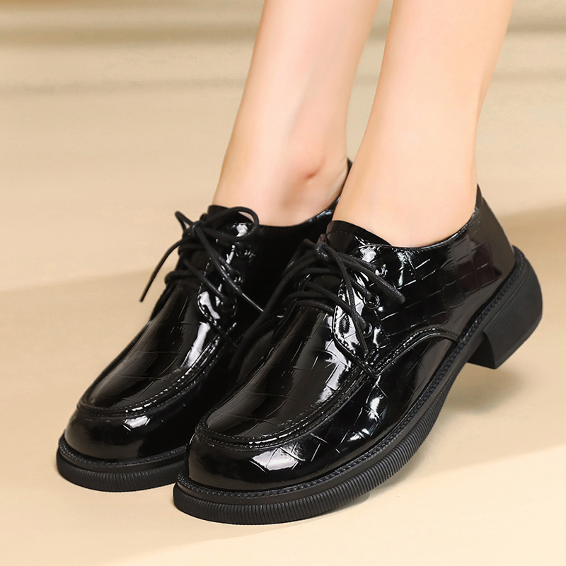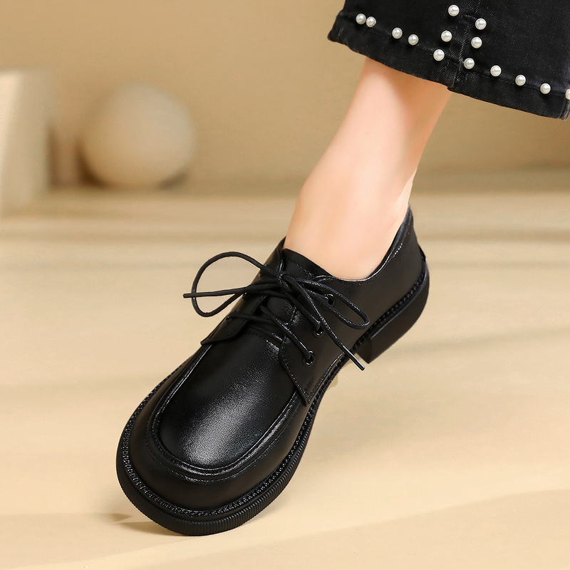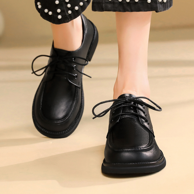 女2025秋季 工作单鞋 新款 英伦风系带平底软底大码 小皮鞋 真皮乐福鞋