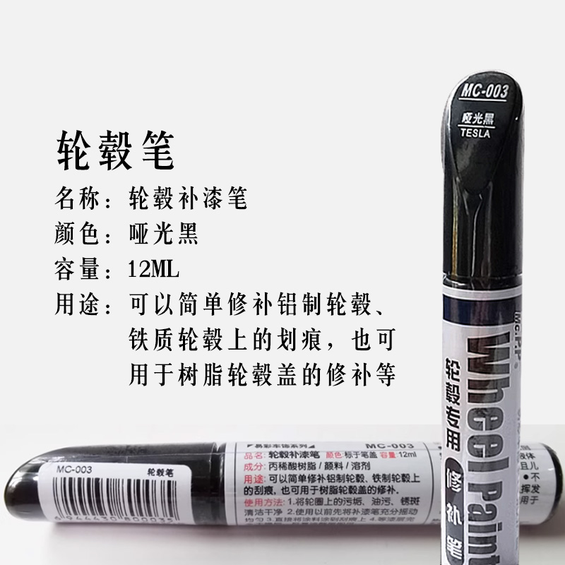 哑光黑轮毂修补笔补漆笔轮毂划痕修复神器黑色自喷漆油漆修补车漆