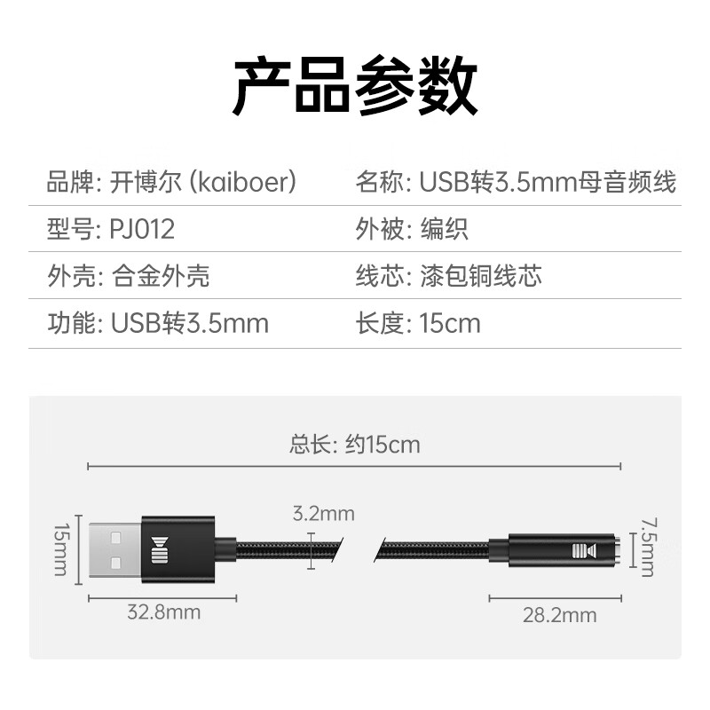 开博尔usb转3.5mm音频线耳机孔声卡耳麦二合一接头电脑接口音频转换器线适用华为苹果aux音响台式 机hifi接口