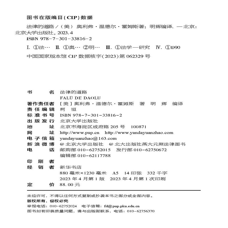 译 9787301338162 奥利弗 社 北京大学出版 中文版 明辉 霍姆斯 温德尔 道路 法律