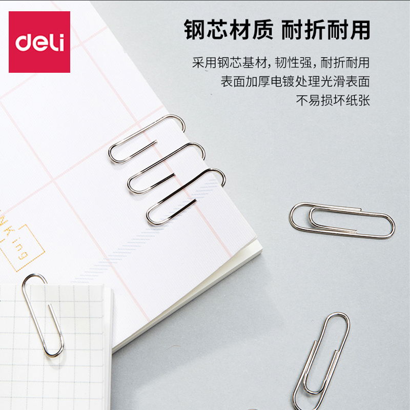 得力回形针加厚电镀表层曲别针收纳固定书签回旋别针彩色莫兰迪夹子镀镍创意可爱u型针回旋针万字夹三针一钉