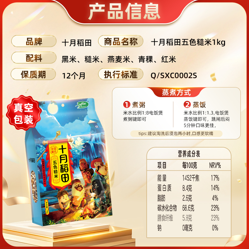 十月稻田五色糙米1kg五谷杂粮黑米红米糙米燕麦米青稞 半日达