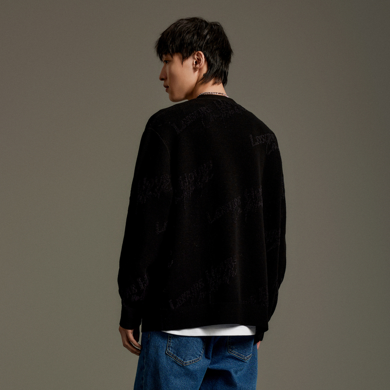 GXG男装 外套GEX13013863 黑色暗纹印花毛衣针织开衫