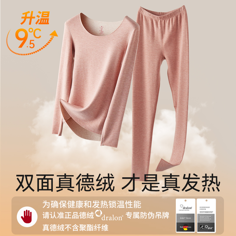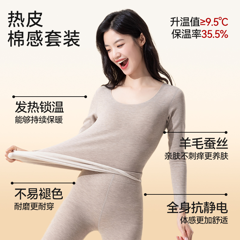 棉毛衫 加绒线衣线裤 女套装 羊毛蚕丝保暖内衣冬德绒自发热秋衣秋裤