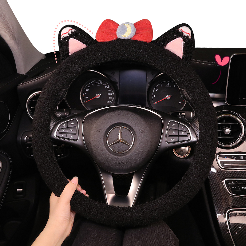 可爱汽车方向盘套冬季 毛绒保暖防滑车载冬天短毛绒车把套通用女款