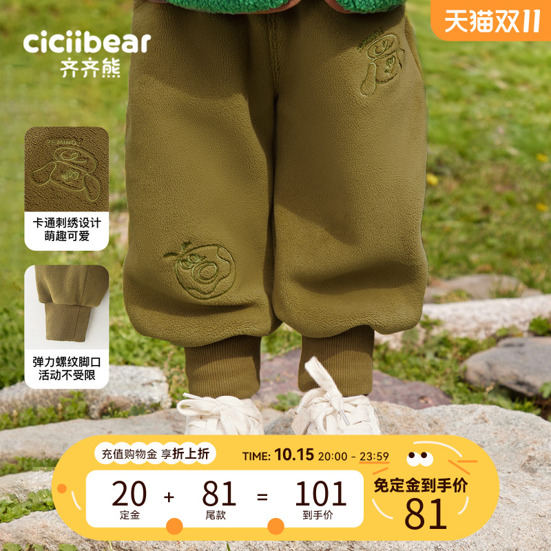 前4H免定金 子宝宝保暖裤 齐齐熊男童加绒运动裤 加厚裤 儿童 冬款