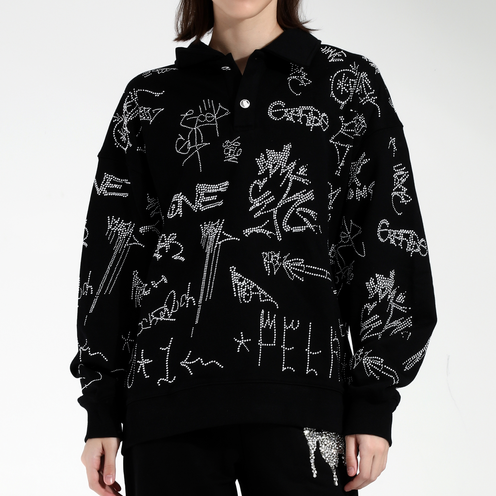 绒衫 棉质舒适大廓形图案圆领长袖 1195824 卫衣秋季 HM女装