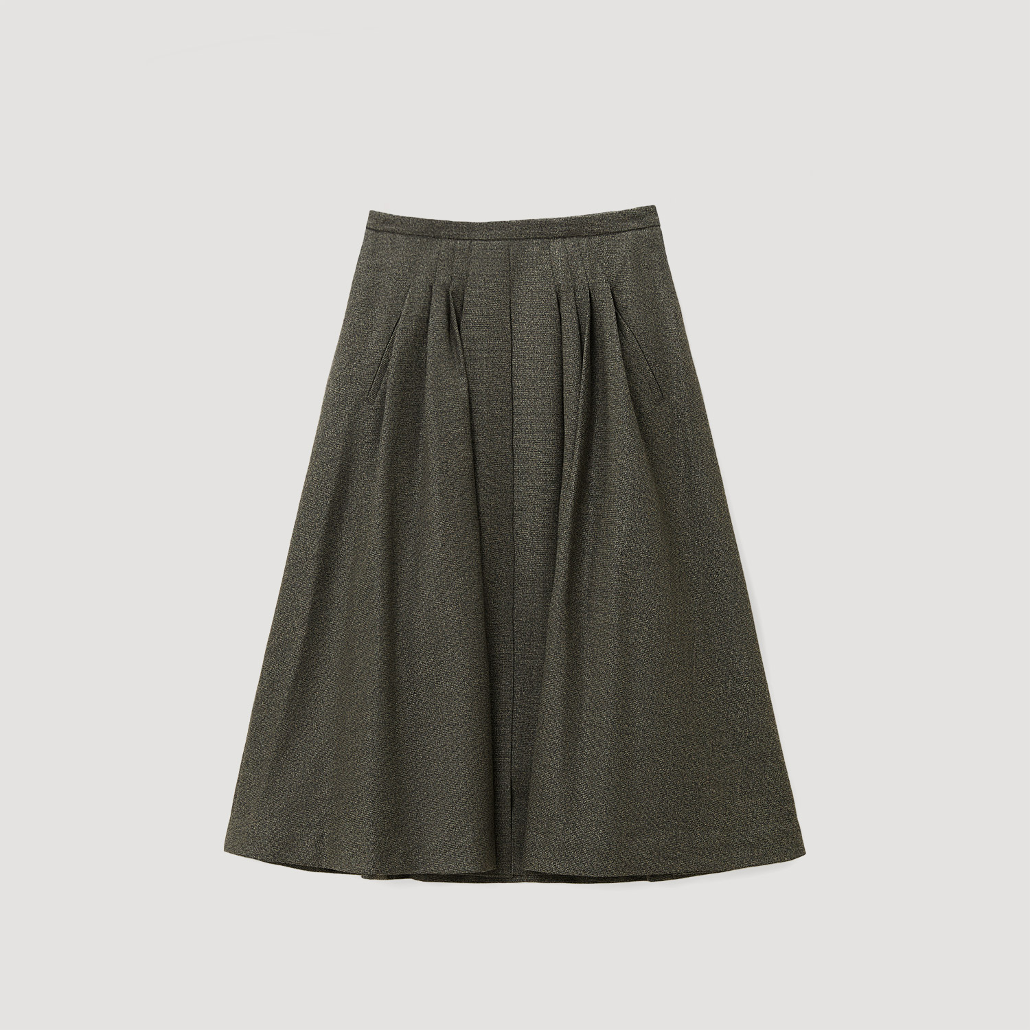 图曼朵灰色毛呢百褶半身裙女高腰加厚a字裙秋冬通勤面试中长半裙