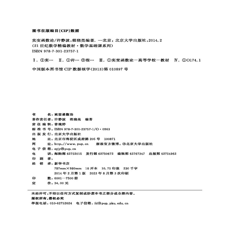 许静波 实变函数论 程晓亮 21世纪数学精编教材·数学基础课系列 社9787301237571 正版 北京大学出版 2023新书