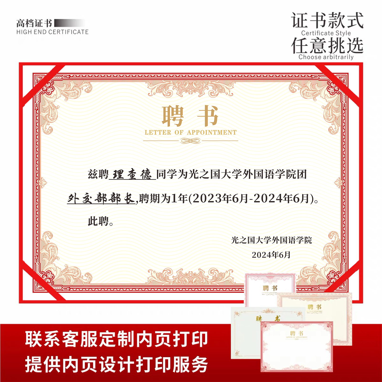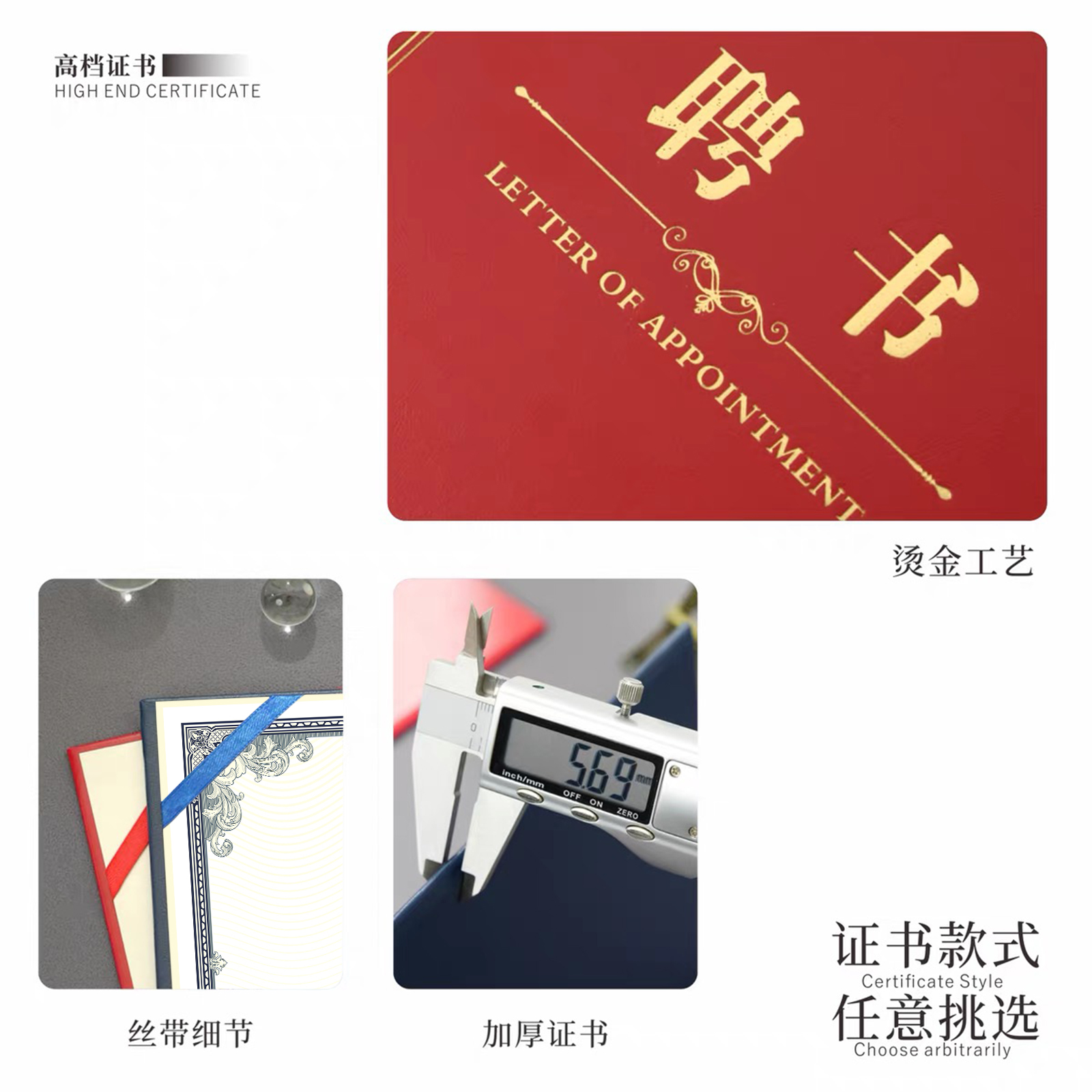 皮纹纸聘书定制外壳A4高档聘任证书任命书定做社团学生会聘请保护套封面烫金内页内芯打印幼儿园班干部家委会