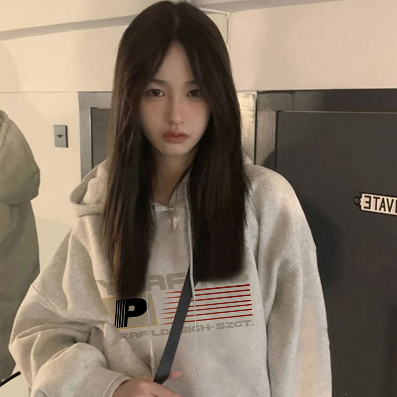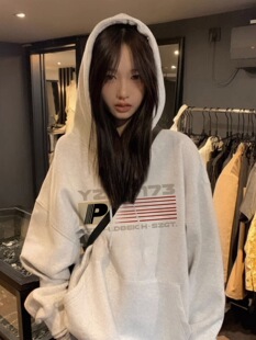 美式 外套chic慵懒风上衣 复古高街潮牌连帽卫衣女春秋oversize薄款