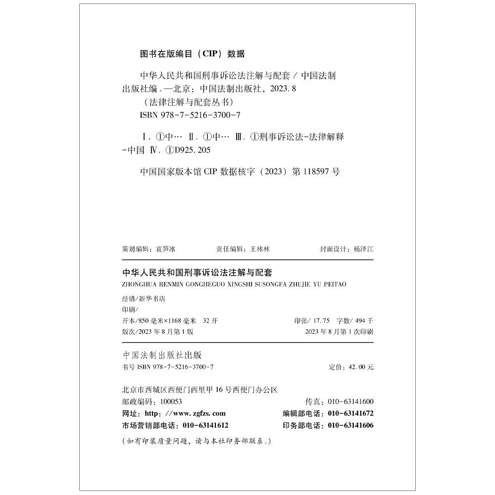 刑事诉讼专门机关 职权 社 中华人民共和国刑事诉讼法注解与配套 9787521637007 中国法制出版 第六版 检察权等 2023新书 审判权