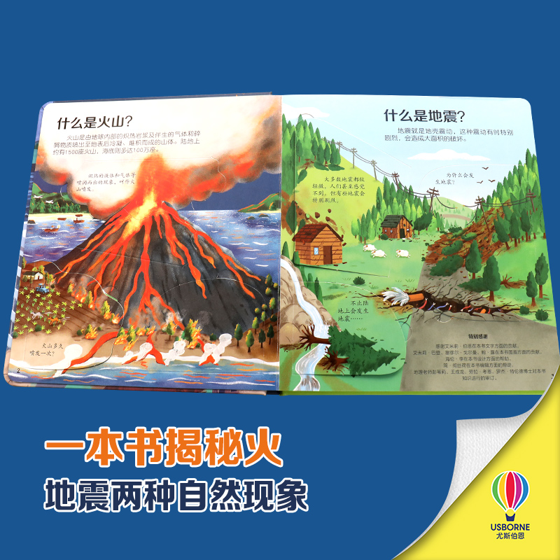 3岁宝宝早教翻页书 揭秘火山地震儿童洞洞书故事幼儿认知农场3D立体翻翻婴儿启蒙书籍0