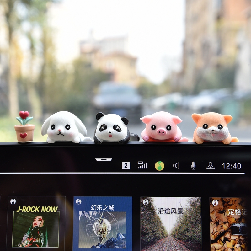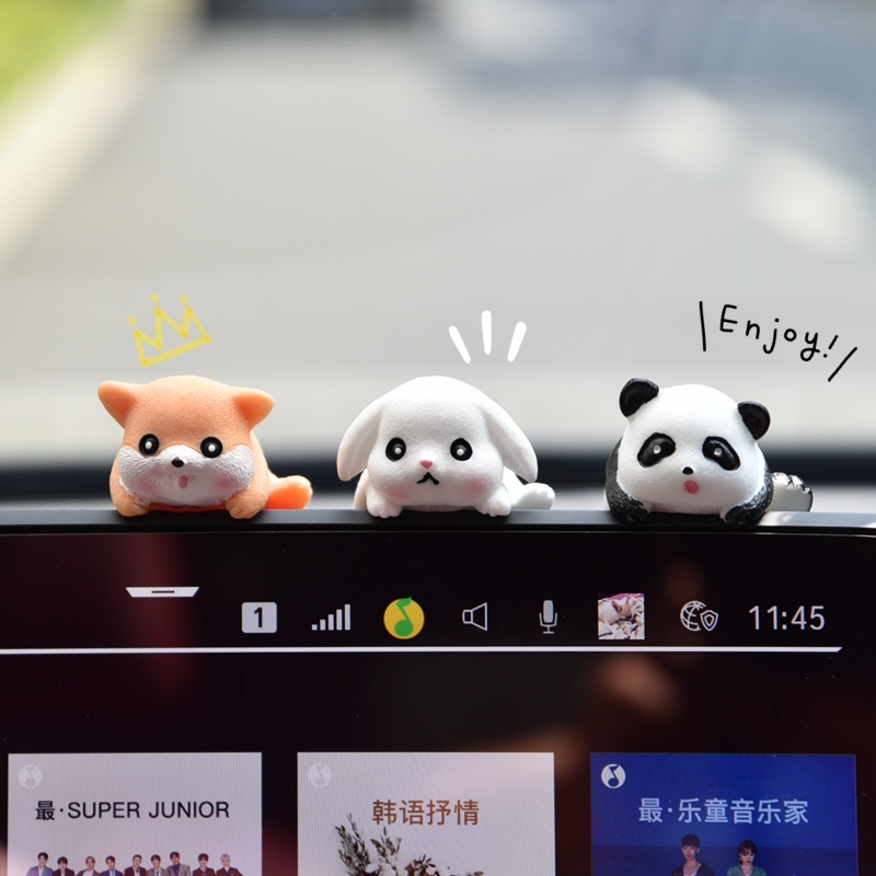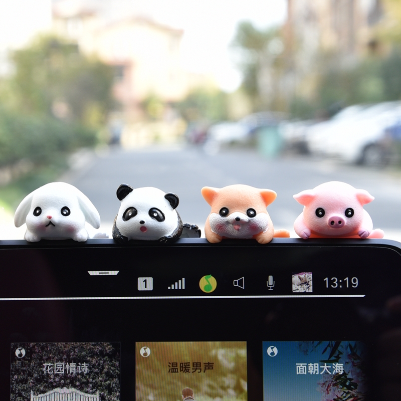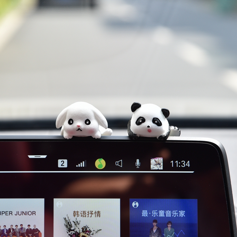 车载车内饰品汽车摆件中控台屏幕可爱熊猫电动车电脑显示屏装 饰品