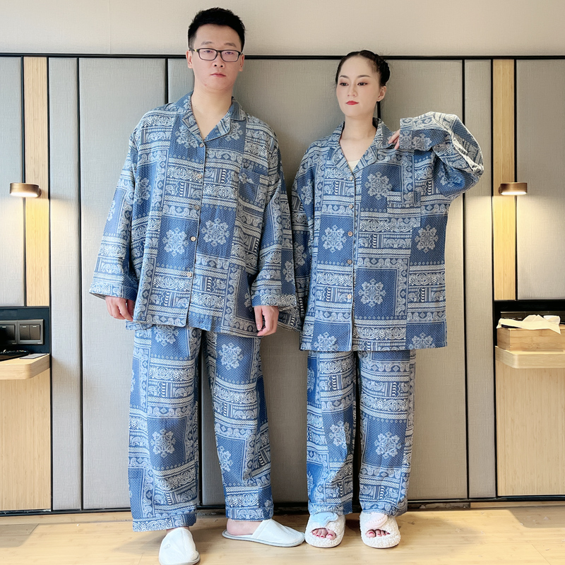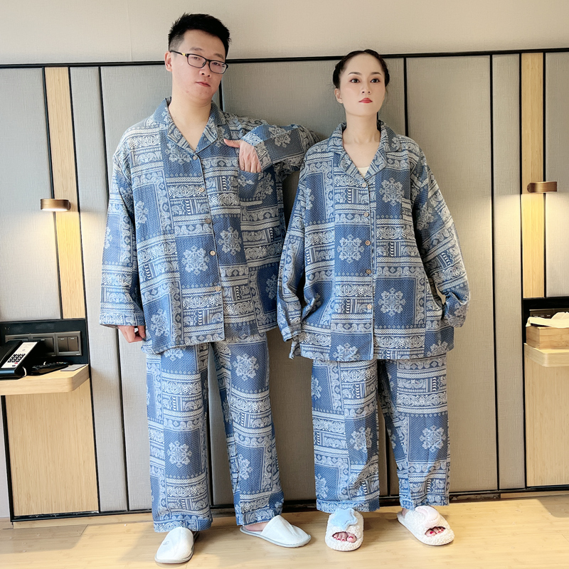 2025新款 嫚熙秋冬季 双面火山小磨毛女士睡衣情侣纯棉家居服套装