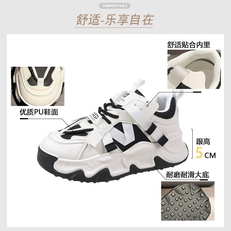 潮牌百搭休闲真皮运动跑步厚底增高小白老爹潮鞋 秋季 女鞋 网红爆款