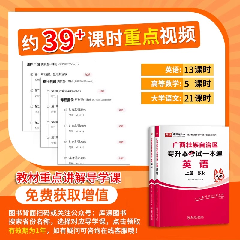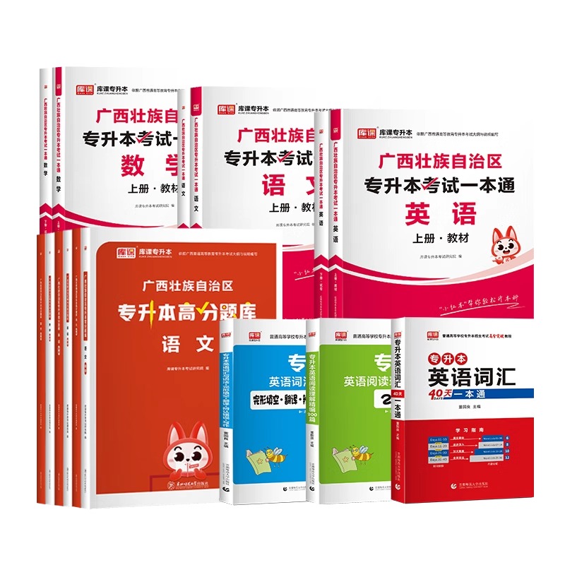 库课2025年广西专升本英语高等数学大学语文教材模拟试卷必刷2000题统招专升本复习资料2024广西新版 英语词汇书大二提前复习 通用版