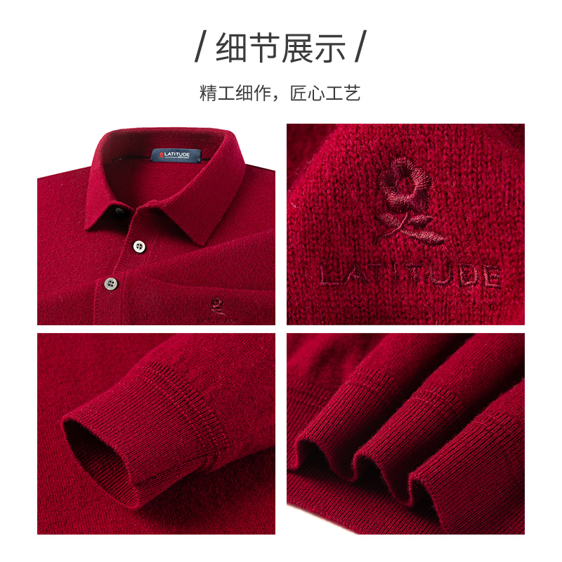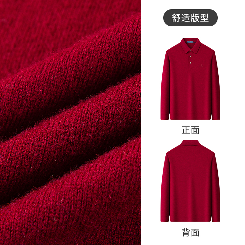 T恤针织衫 红豆假两件毛衫 领长袖 衬衫 男毛衣 爸爸保暖假两件打底衫