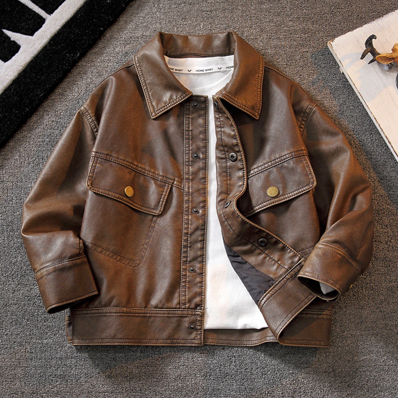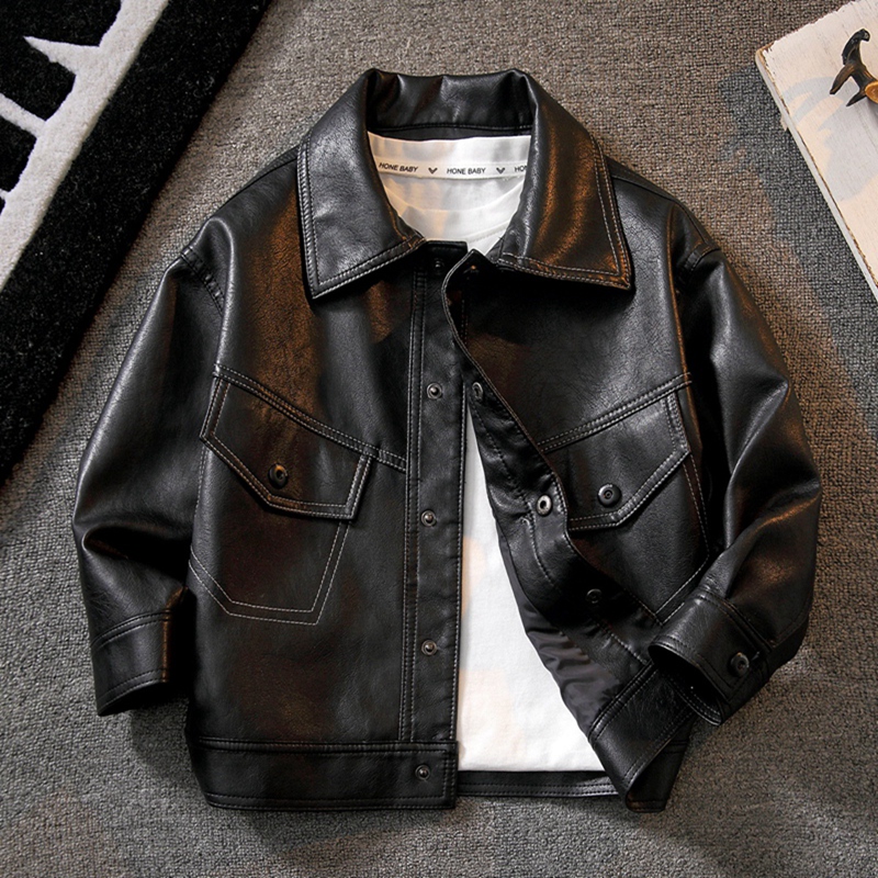中大童皮衣秋季 儿童装 2025新款 外套春秋款 男孩夹克衣服潮 男童秋装
