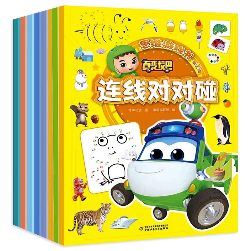 全套8册 百变校巴思维游戏书连线画本思维逻辑训练走迷宫拼图视觉大挑战贴纸书3到6岁以上涂色书培养孩子专注力找不同益智游戏书籍